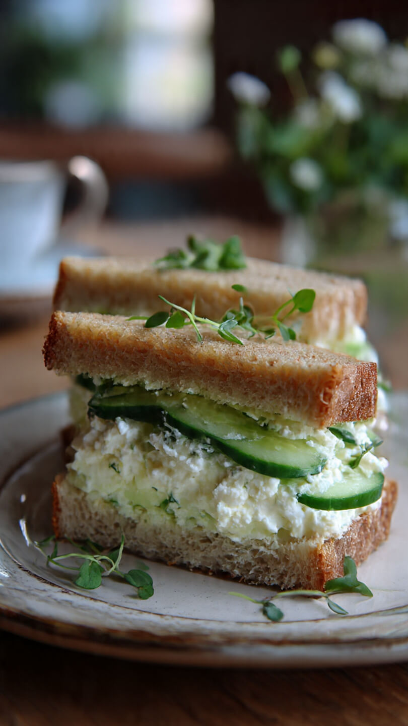 - Gently press together, then cut each sandwich into 2 quarters (triangles or rectangles).